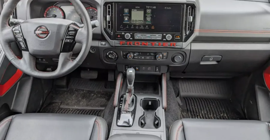 Всередині Frontier 2025 залишився функціональним, але став сучаснішим. Високоякісні матеріали, великий 9-дюймовий сенсорний дисплей, підтримка Apple CarPlay та Android Auto, а також оновлена мультимедійна система роблять цей пікап комфортним і технологічним.