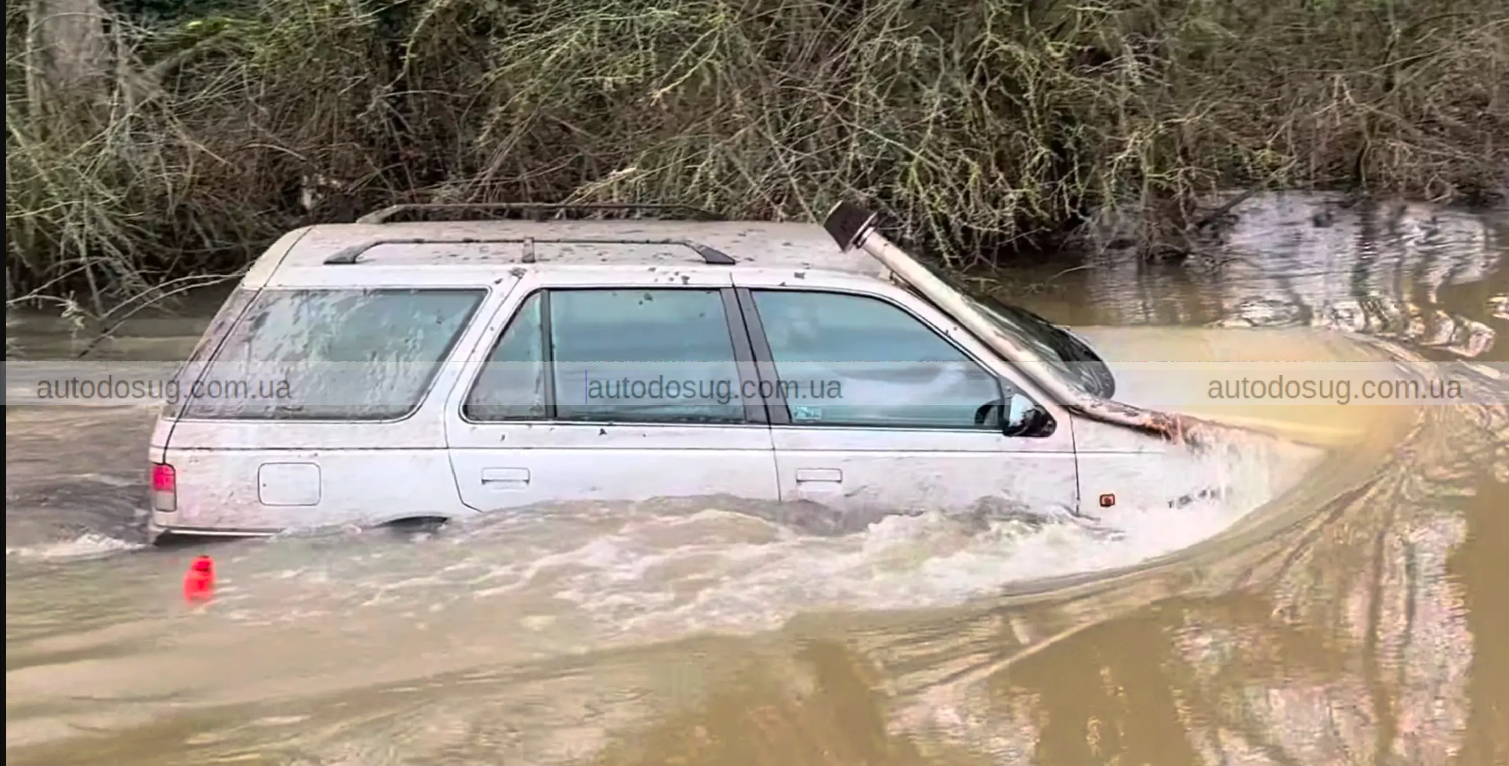 Важливо пам’ятати — універсал із таким обладнанням, звісно, не створено для плавання як амфібія, і його герметичність не відповідає вимогам кораблебудування. У салоні можна побачити, що вода без проблем потрапляє у внутрішній простір через ущільнення дверей, які просто ніколи не були розраховані на такі умови.